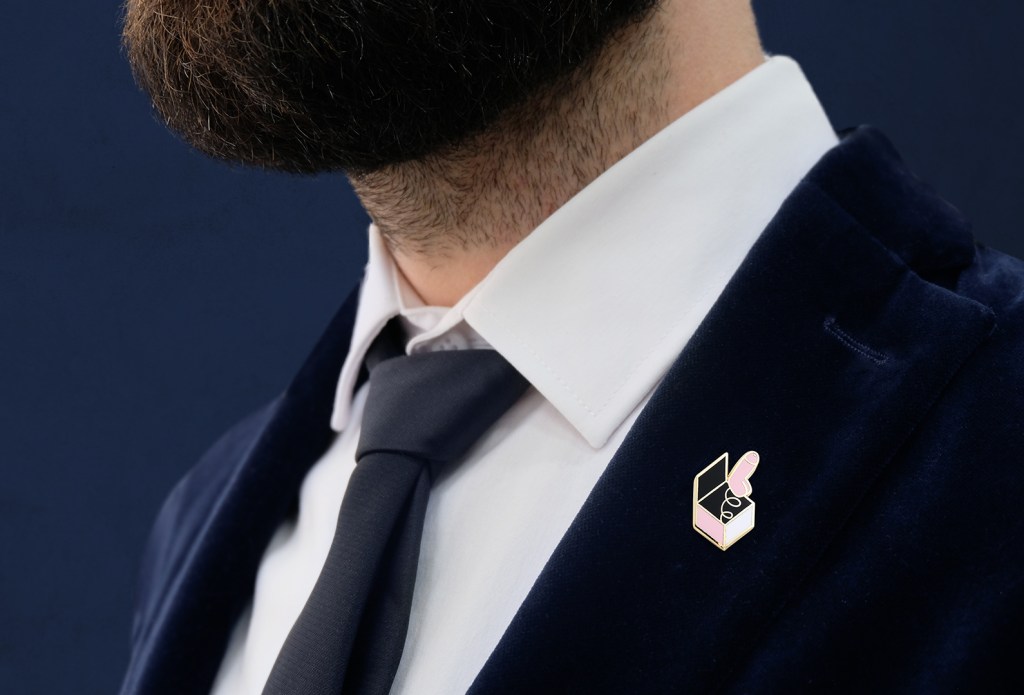 My products are for everyone, not just for gays particularly. There are also a lot of women wearing the Hairy Butt pin with pride, and straight men with the Dick in a Box pin on their suit. I think my brand connects the LGBTQ+ world with the straight world. I don’t like to see these worlds as two separate things. We all love the same things, so why don’t share them?
