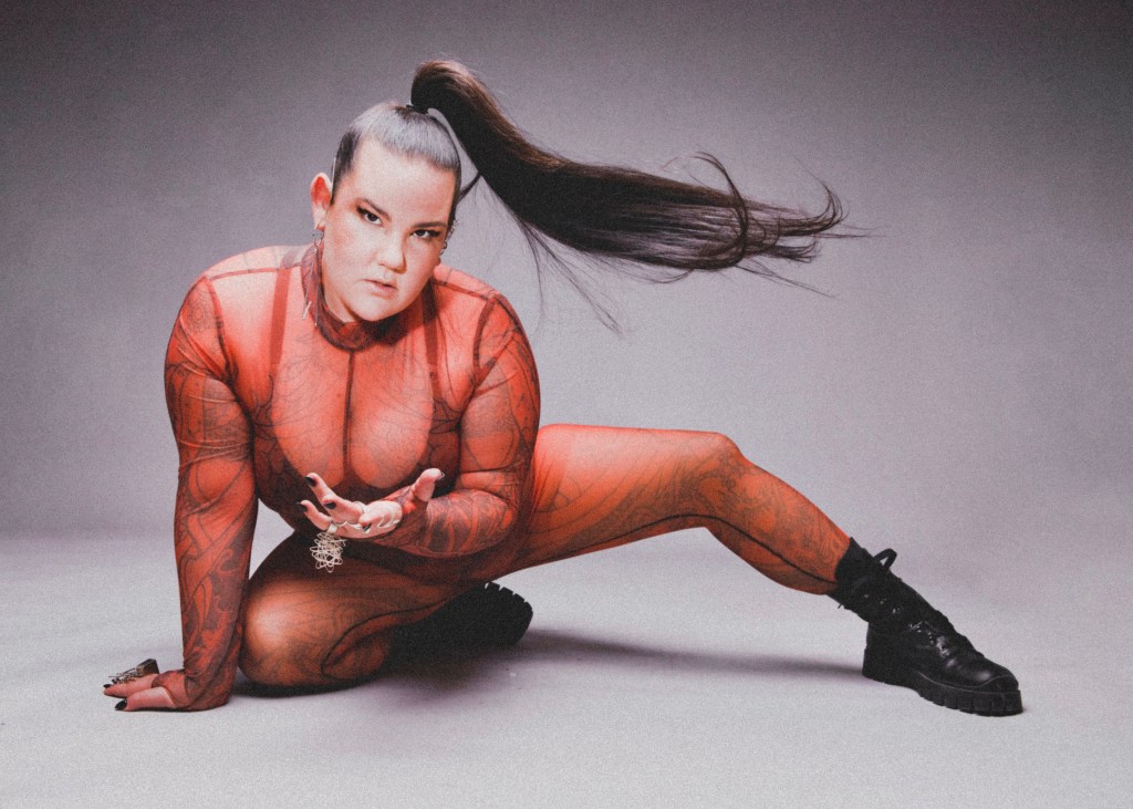 Oh my gosh. First of all, thank you. When I got the offer to come back, I was super super excited. I said to the organisers “If I’m coming back then I want to do You Spin Me Right Round” because I Dead or Alive is such an amazing queer iconic band. And and something about this song is so Netta. I wanted to make a big boom and I had a UK-based designer too. I said that I wanted to come and appear from the sky because for heavy girls this is not usually an opportunity we get to experience. You’re never getting to be in the air. Like a boy never lifts you up. It was very exciting. I was wearing this 3D-printed latex inflatable piece by Jack Irving and I was carrying on stage about 40 kilogrames of equipment.